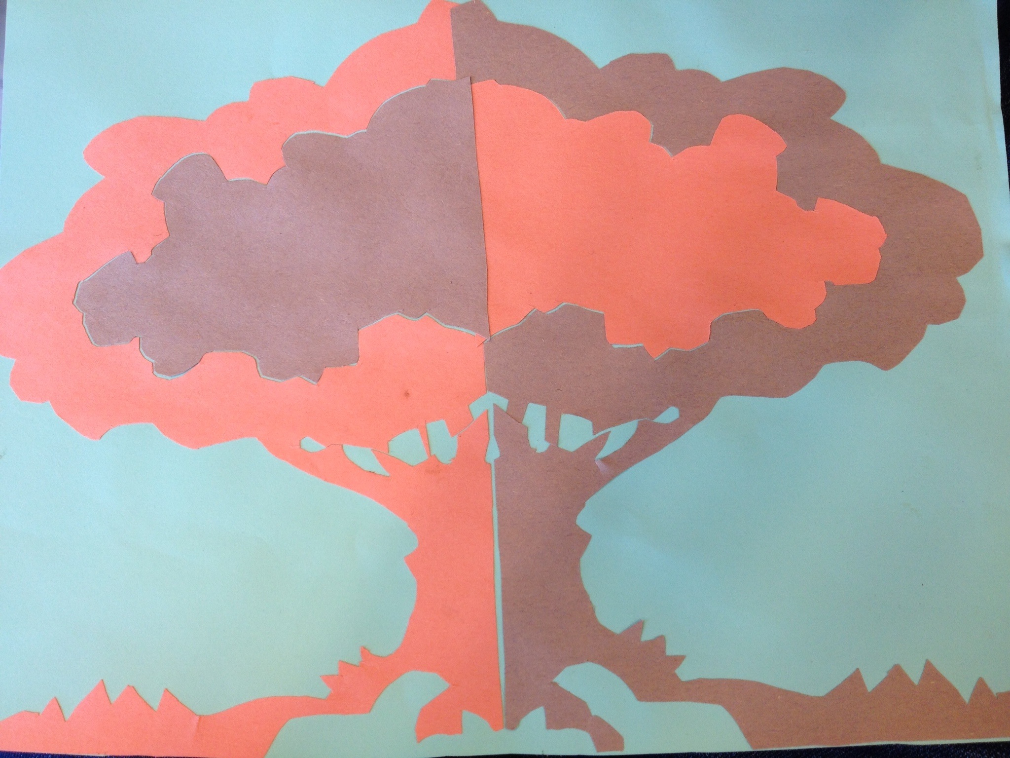 Negative Space is the drawing of a set of objects as if relative space was non existant. The objects you are drawing has no visible connection points and nothing differentiating the objects. You are only drawing the outline of the objects in a negative space drawing. To get negative space in my cutout I used a template and cut it with two pieces of construction paper. I then glued those two pieces onto a green piece of printer paper. To find negative space in my still live drawing I tried to figure out where the figures would connect before I drew them so that I didn't have to connect them together and erase the lines. If you know how to draw negative space as an artist you are more capable of seeing how objects react and menuever in a set space. Seeing negative space would enhance your drawings skills if you study it and know how to do it well because it could teach you how things react and menuever.
