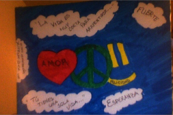 El mural esta ubicado en la 62nd y la calle de Marcado. Mi mural narra un cuento y fue creado para inspirar otras personas hacer el arte público y comparten sus creativos con el mundo. Los elementos de mi mural son muy simplemente y creativo. Yo elegí colores brillantes para mi mural porque yo quiero mi mural que sea vibrante, inspirando, y muy bonito de mirar. Los colores simboliza las imágenes que viene a mente cuándo tú piensas sobre. Rojo representa amor porque es rojo simboliza pasión y es además, asociado con amor. Verde representa paz porque como lo veo, paz representa la vida y el color verde simboliza eso. Amarillo representa felicidad porque es la mayoría de son risas mostra los son risas amarillos. El color es muy brillante y ayudaré el mural mira muy bonito. Mis principal ideas para el mural son Amor, Paz, Felicidad, y Esperanza. Yo elegí estos palabras como mis principal ideas porque para mi, estos son las cosas que ayuda un persona crece. Yo pienso es útil dejar el público decide lo que sienten. Y vale la pena.