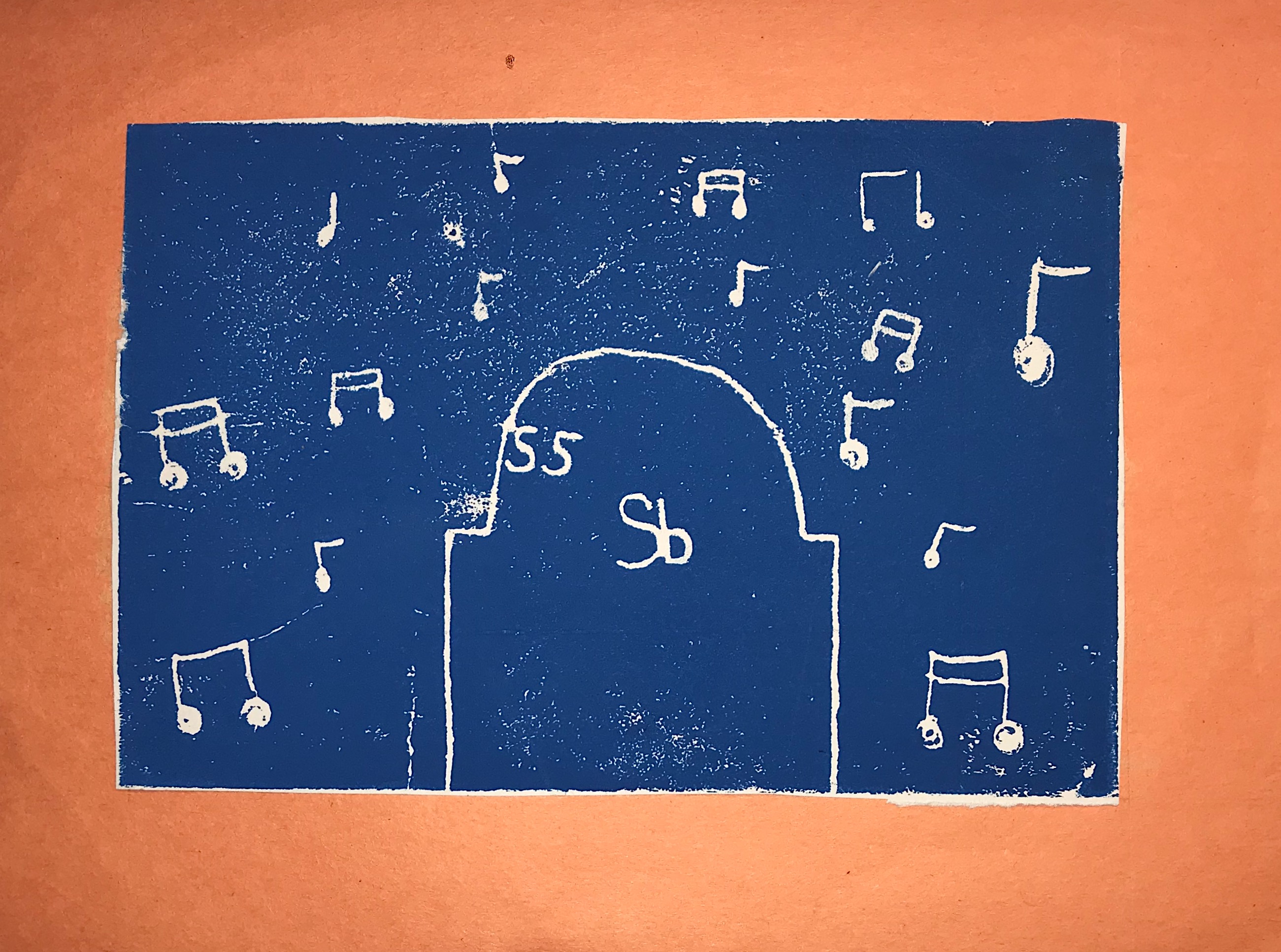 I traced music notes floating around what is supposed to be Mozart’s grave. I decided to design my piece like this because many people lost their lives to Antimony. I drew music notes around the grave to represent one of the more famous lives it took.