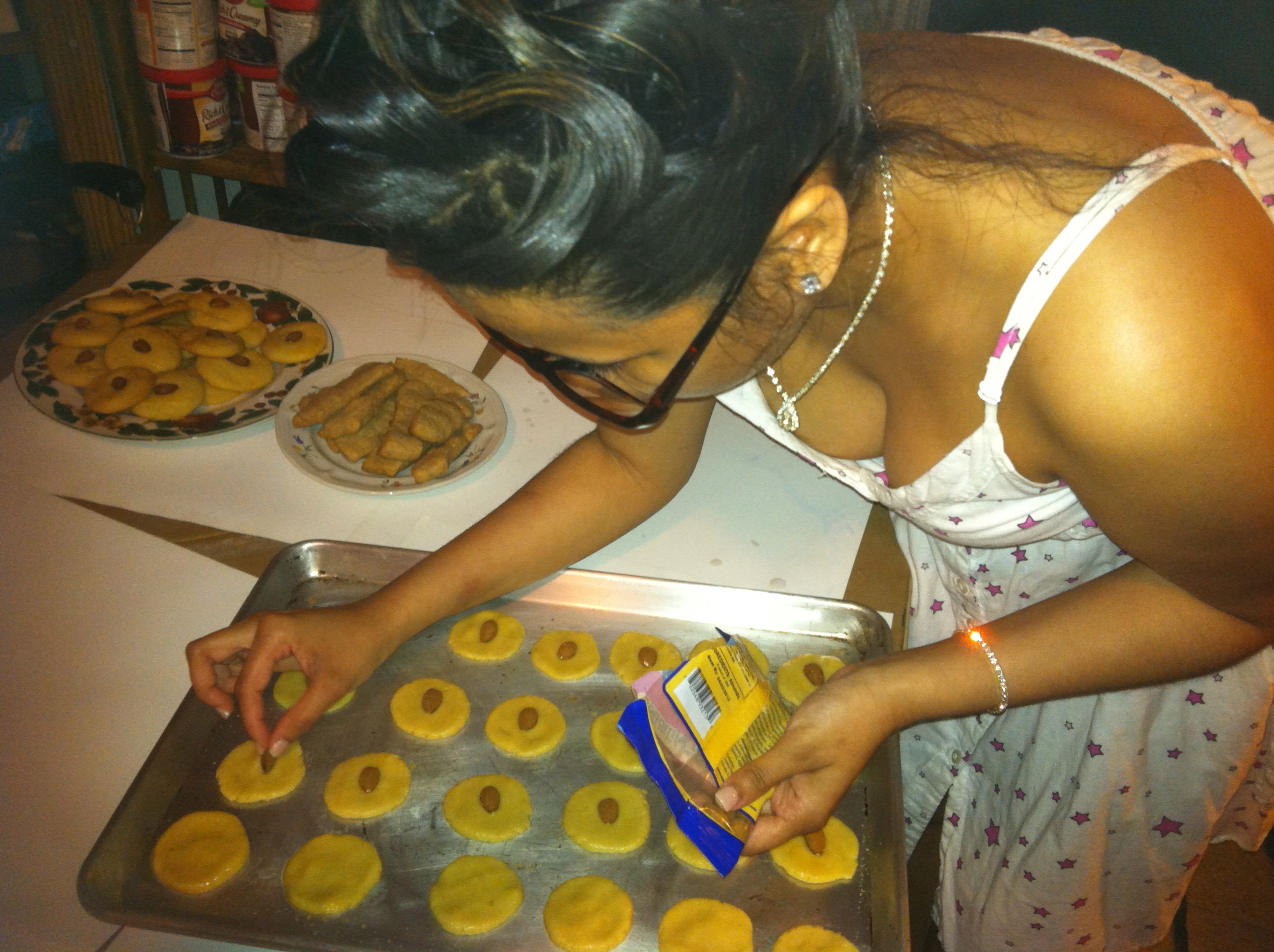 Me placing the almonds on the