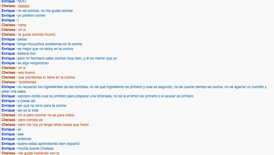 - I spoke with Enrique Matos and I picked him because he is from Peru and is trying to learn Spanish, as well as that he is 19 so close to our ages.What did you learn about them? What did you learn from them?