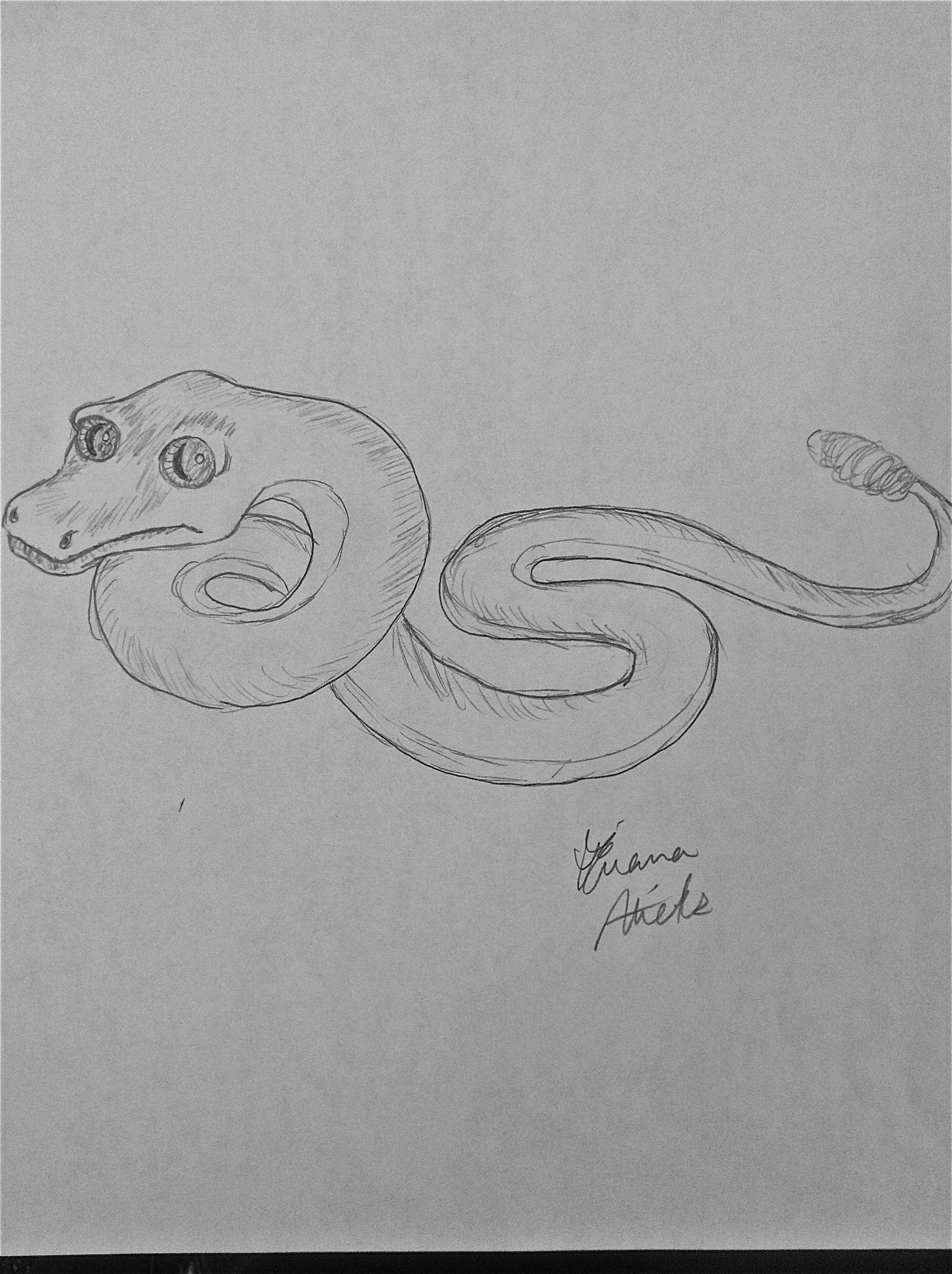 "I'm a snake!" Drawing a cartoon snake. Not bad if I do say so myself. It was really easy; cartoons are always easy. All I had to do was add some hatching lines to give it a shadow and bam! The snake was complete. No harm, no foul.