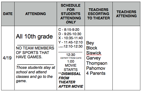 4/19 Bully (MOVIE) All 10th graders (all kids that play sports stay at school)
