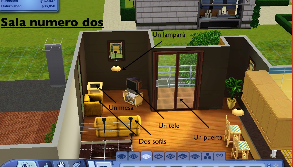 La casa tiene cinco cuartos, tres baños, dos cocinas, dos salas, un jardín, un garje y un oficina todo. En el primer piso, hay un sala, un cocina, y un garaje. La sala es grande con moderna muebles. Hay dos sofás grandes, un lampara, un tele enorme, juegos para familia de Chaveliz y un mesa para come. La cocina es muy enorme y moderna. La cocina tiene tres gabinetes para come y mas necisitans, un lavaplatos, dos estufas, un puerta grande, tres sillas, y un nevera grande. La cocina colores es muy muy simple. El garaje es muy simple tambien. El garaje tiene dos carros y dos puertas, un para carros y un para personas.