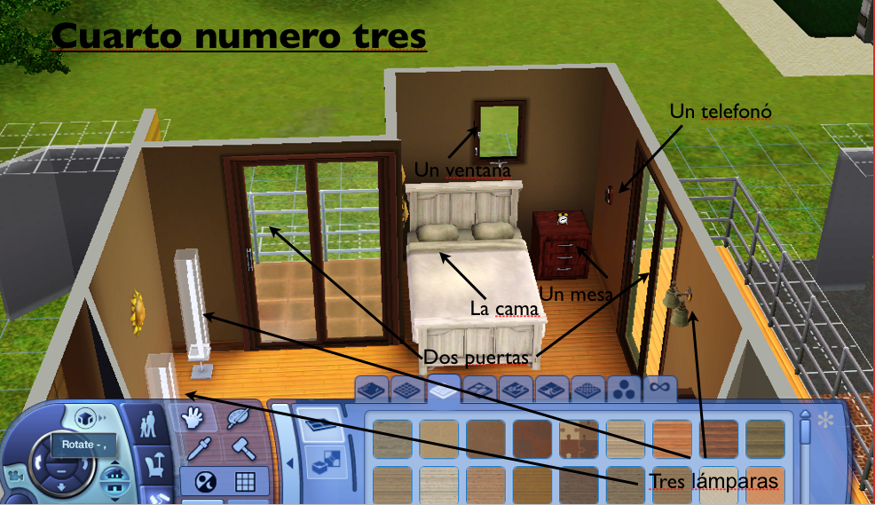 En el tercer piso, hay tres cuartos, dos baños, y tres balcóns. Cuarto numero tres is elegante y moderna. El cuarto tiene un cama grande, un ventana, un teléfono, un mesa, tres lamparas, y dos puertas. Muy elegante colores para el muebles. Cuarto numero cuatro es muy elegante tambien pero cuarto numero cuatro es para un muchacho. Tiene un cama grande, toys, dos lamparas, un espejo alto, dos puertas y no hay balcón. Cuarto numero cinco es muy feo en mi opinión. La colores es muy vibrantes.Tiene un cama pequeña, un mesa, un ventana, dos lamparas, y tres puertas.Baño numero dos es muy feo tambien. La colores es feo gusta el cuarto. El baño numero dos tiene dos puertas, un ducha, un indorno, un lampara, un lavamanos y un ventana. El baño numero tres es muy bonita. Hay dos puertas, un ducha grande, un lavamanos, un indorno, y un espejo.