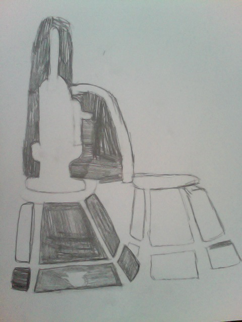 You can find negative space in my cut out drawing of the bird by looking at the black parts. The black parts are the negative space in the drawing. This space is empty because there wasn't a bird there before, but with the positive space around the negative space, you can see the bird and it's wings. Now for my second drawing, even though it isn't complete. You are able to find the negative space vs. the positive space. As the same for this drawing, the black or shaded in parts is classified as negative space. The non-shaded part which is the objects in the pictures are the positive space. The negative space isn't occupied and the positive space because it is the figures in the picture. It helps for an artist to see the negative space because the artist can focus on outlining the figures in the picture instead of getting ever detail. Once the artist can outline the figures in the picture then, the artist knows the basic shape of the figures in the picture. So, the artist can focus on drawing the positive space of the drawing last. Another reason, it helps for the an artist to see the negative space because it makes for an interesting piece of artwork. If the artist draws the negative space, then the audience can wonder what is in the positive space.