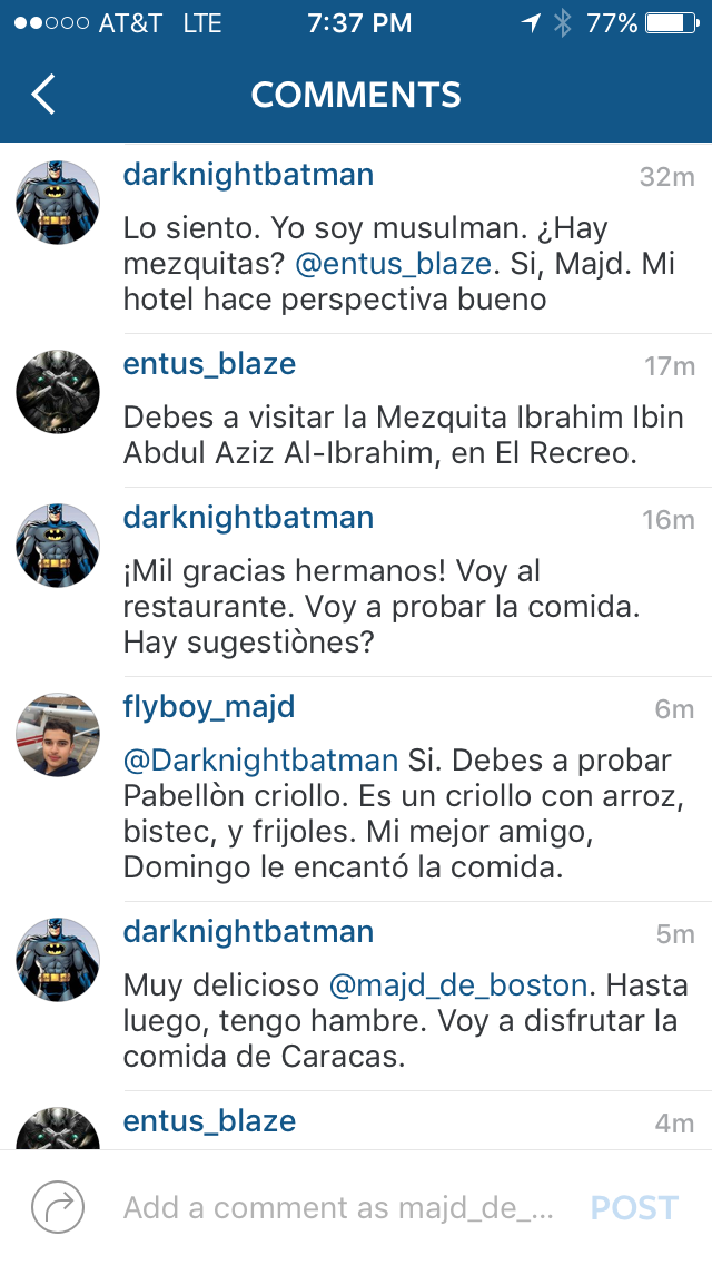 Hamidou is on a class trip to Caracas, Venezuala. He posted a picture onto Instagram and his hermanos, Majd and Sean held a conversation about Caracas.