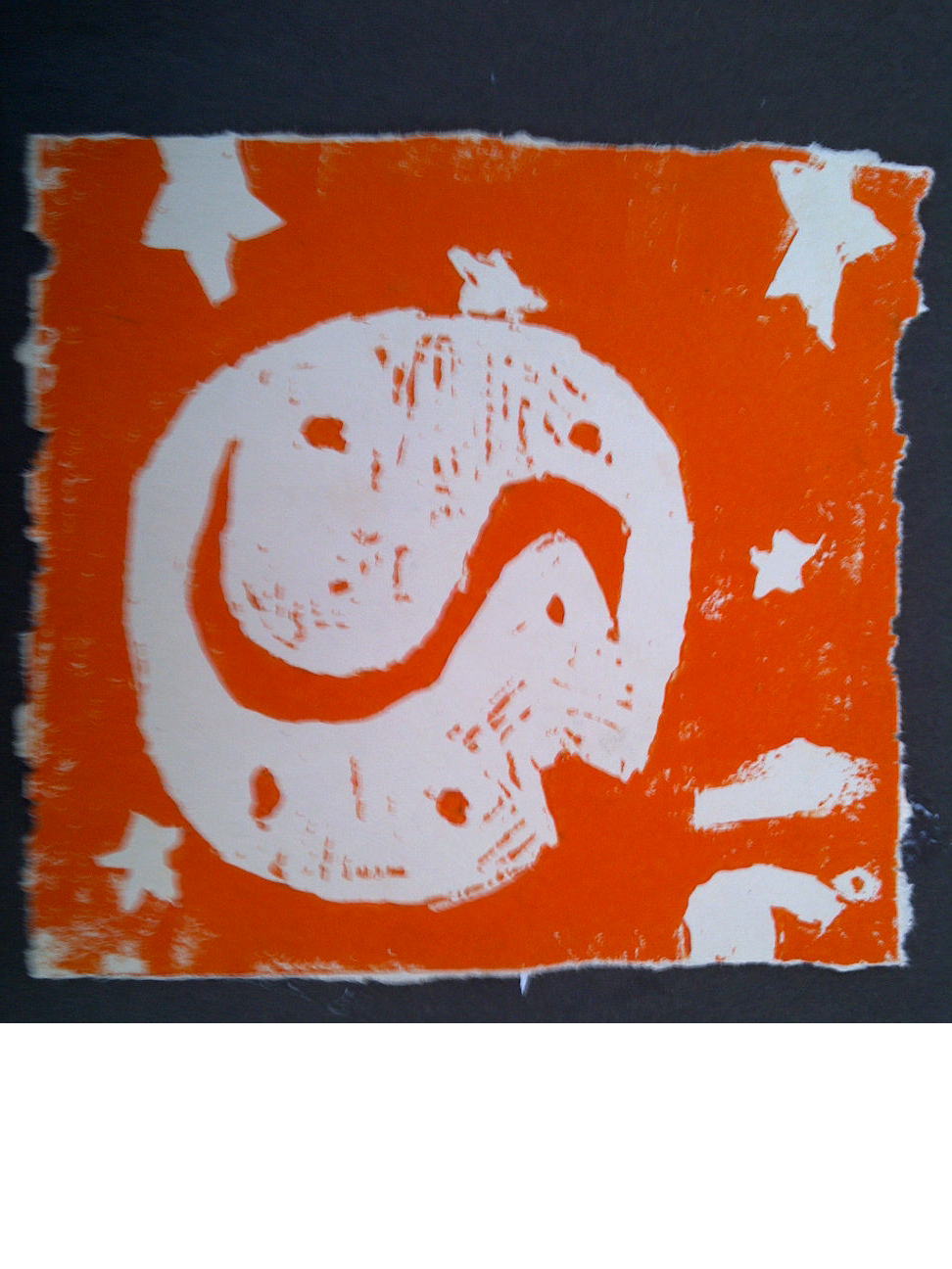 I got the idea for my print because once I read that one of Jupiter's moons is the same color as sulfur I thought that it would be neat to make my print the shape of a moon.