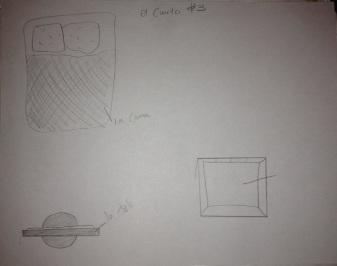 En el cuarto numero tres hay una cama, un tele, y una guardarropa.