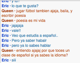 This interaction helped me with learning how to transition in conversations. For once, my conversation with someone didn't sound straight out of a textbook. I added some "text language" and tried to imitate the way native spanish speakers speak with me.