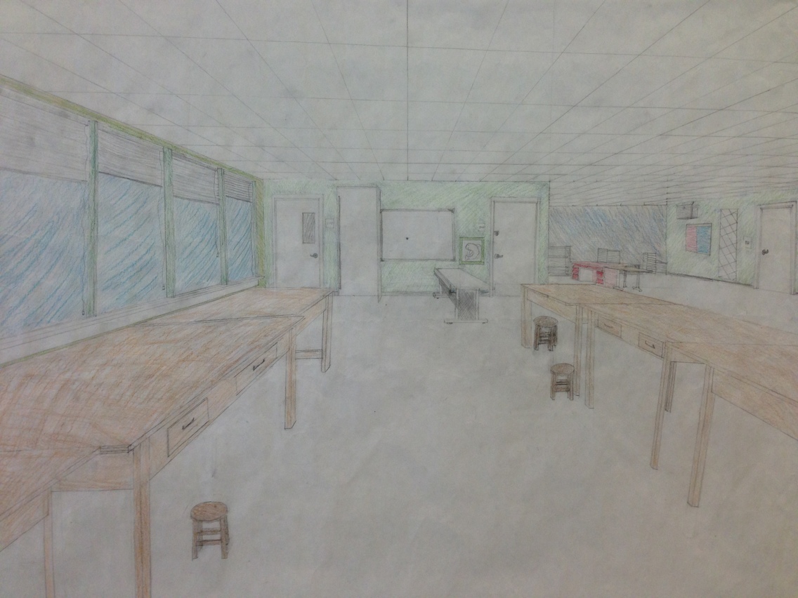 4. My advice to someone who as never drawn a one-point-perspective is to take your time and no matter how much you want to rip it into a million pieces, don't do it. It is not worth starting all over from scratch for. Just erase and keep on going. Also, don't be afraid to ask for help or to give it to someone else. You will be surprised at what your peers can help you with.