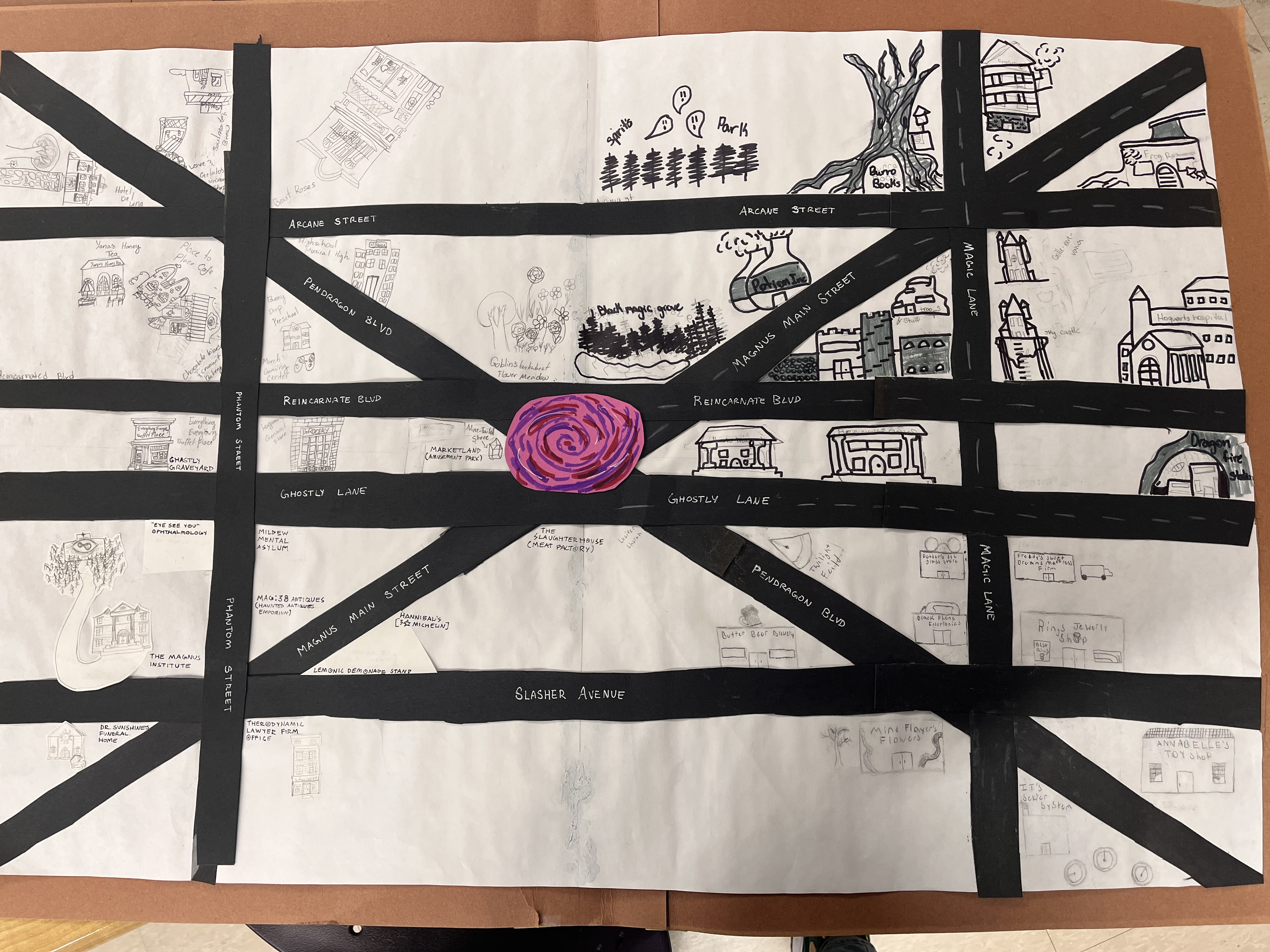 This is a map of our four realms of different books, shows, genres etc. here you find a place different from the last to show 4 major book genres. on being fantasy based, one romance based, a horror, and a place for the supernatural
