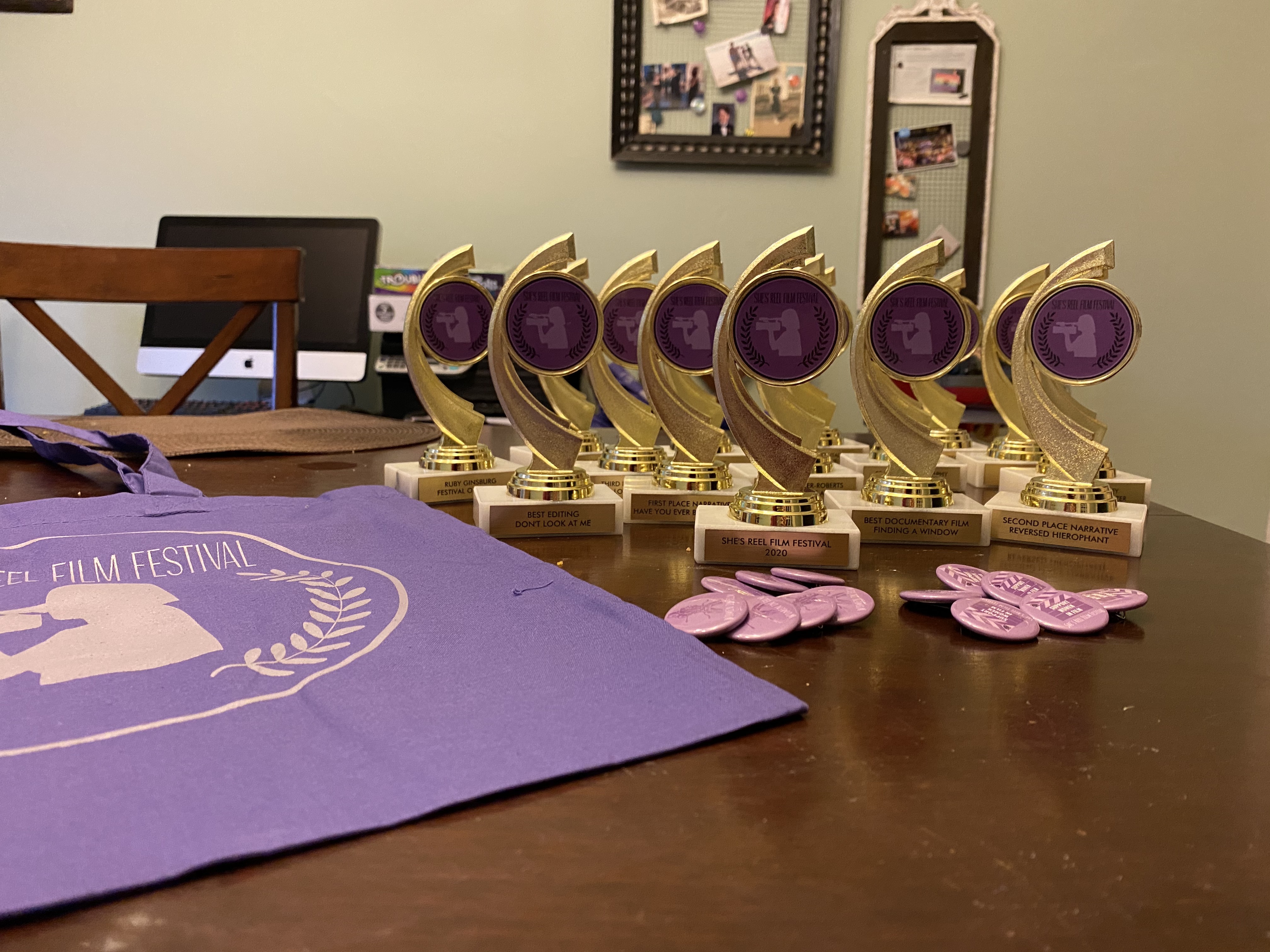 I have broken down the process of putting on this festival into three stages, stage one being the conceptualizing and branding stage. This is where we made decisions about the ethics of our festival, created all of the guidelines, and made our brand. We made a logo, color palette, name, slogan, Instagram page, and website. After that is stage two, the marketing and organizing stage. Here we searched for a venue, created a budget, found judges, created a timeline, pitched to Braskem, received full funding, posted on Filmfreeway, and then started accepting submissions. Stage three was the presentation stage. Here we had to switch our festival from in-person to virtual, learned how to stream, had the judges score the films, analyzed the results, assigned awards, created a script, highlight reel, and slide show for the virtual festival, and then hosted it. After the main event was over we designed and ordered swag for our festival and crafted homemade She’s Reel gift boxes that I hand-delivered to every submitter, judge, friend, parent, mentor, and supporter of our festival.