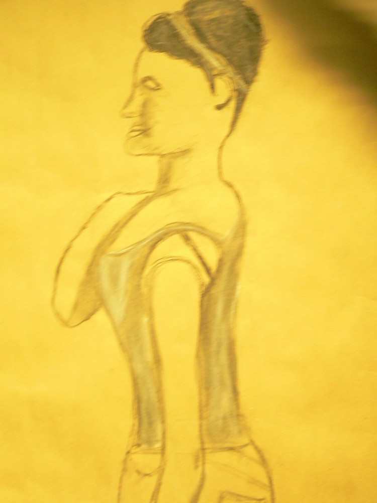 This is my attempt at a full body drawing. Again, I'm afraid that big isn't really my cup of tea. I feel much more comfortable drawing small. Also, Drawing faces and people is my least favorite thing to draw. Maybe that has a lot to do with why it's so unfinished looking. I try so hard to make them perfect, or as close to real life as I can, that I lose track of time and then I have to rush through it so it's done and I have something to show for my work. I'm also very afraid that I'm going to offend the person somehow, if I draw them bad. Which, is how I feel about this drawing. Kim, in no way shape or form looks like this. I wish I wasn't so judgmental about my work, I think that this could be pretty good, if I gave myself credit and actually stoped worrying about what it looked like. [Click image for bigger more clear picture]