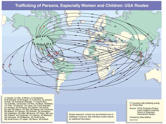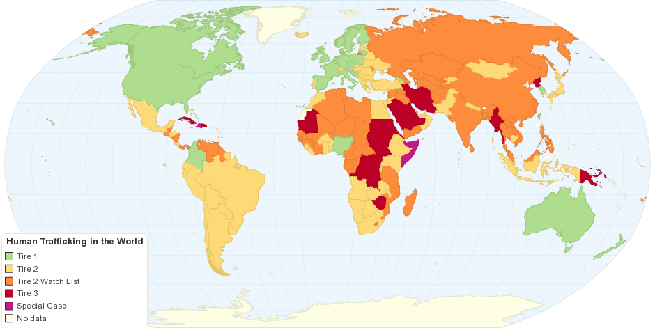 Where is Human Trafficking occurring? Everywhere. Almost every single country on the planet is affected in some way by Human Trafficking. This map shows only a segment of the trafficking trade around the world: