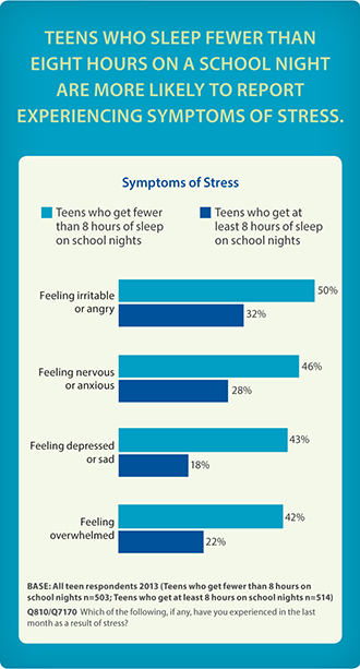 A lot of teens suffer from what is called Insomnia. One in three people will have insomnia at one point in their lives. Insomnia is when someone simply has trouble falling or staying asleep, or simply when a teenager fails to get enough sleep throughout the day. If insomnia lasts for at least a month with no relief at all, then doctors can call it chronic, meaning there’s more than one cause to it. The most common cause is stress, but a lot of other factors can lead to it, such as home/family problems, and physical discomfort. Exposing your eyes to sensitive light can also take away sleep.