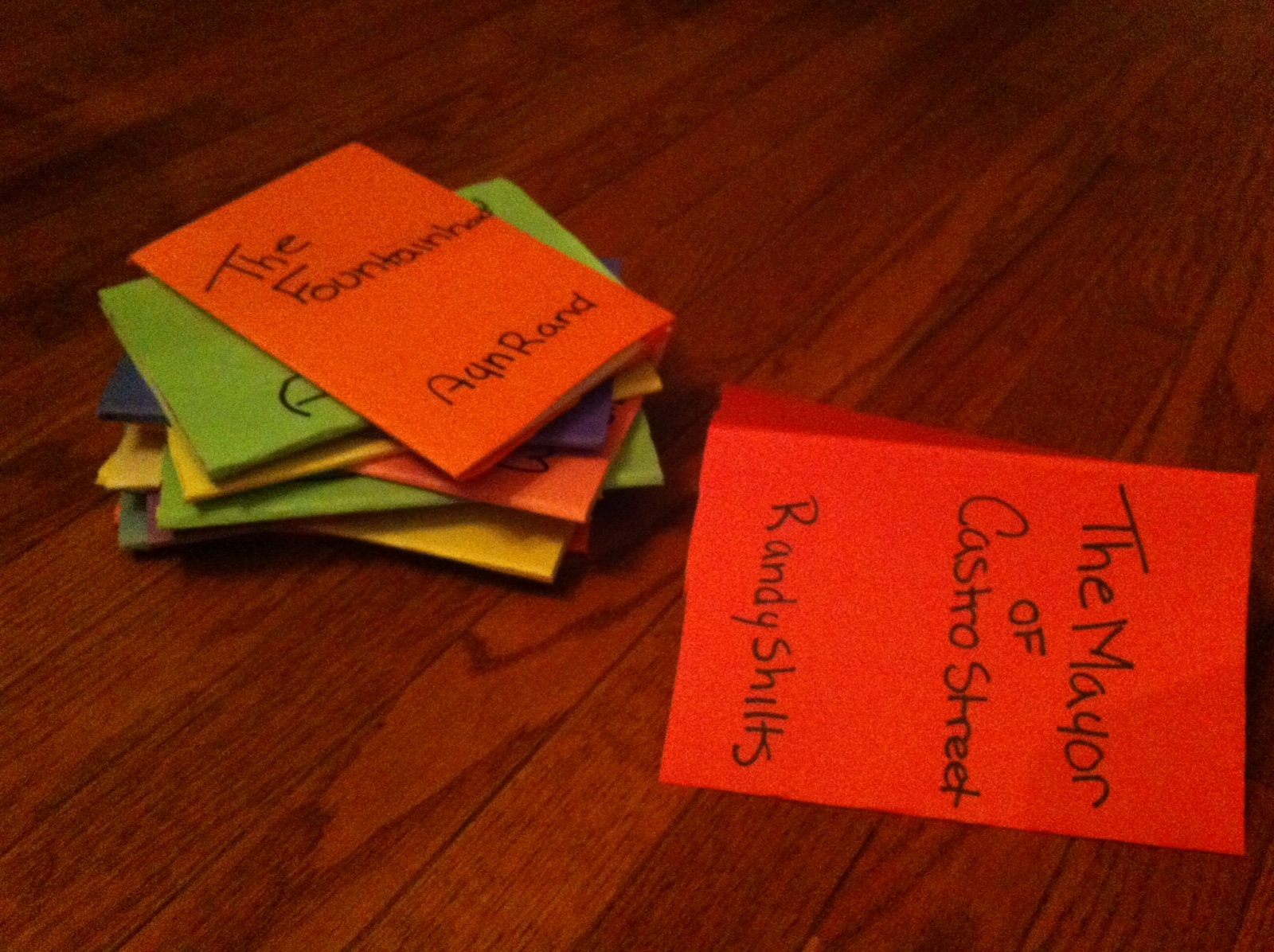 For my creative portion of this project, I chose to show the main character Charlie’s development throughout the story through the books that he reads. Throughout the book, Charlie reads 12 different books. Each one he reads at a different point in the story. For each one I wrote one word the described how he was feeling while reading that book. I wrote it on the back of a book that I put paper over and wrote the title and author of the book on to give it the affect that it was actually the book that he had read. Below is a picture of the books he read all stacked in order of when he read them.