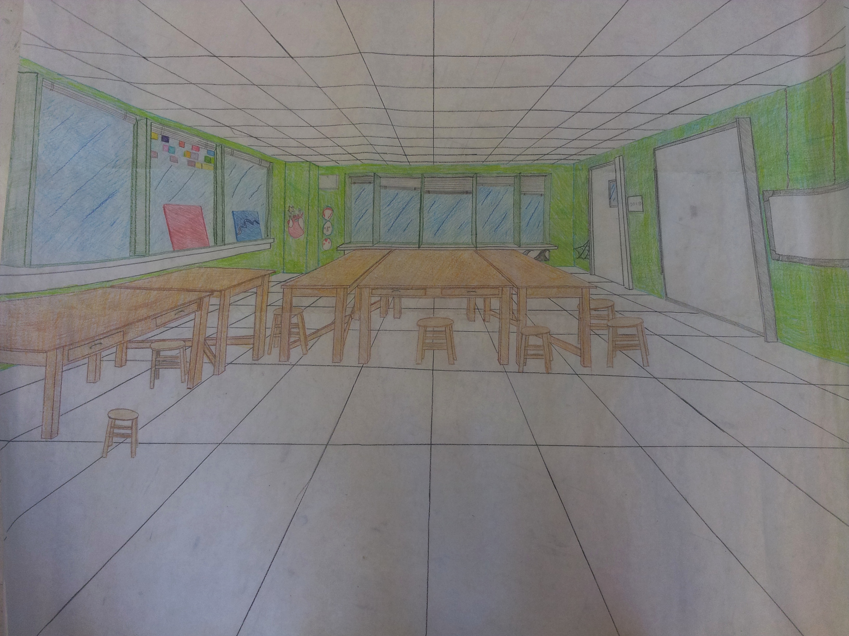 Even though I believe that my skills increased in drawing, my drawing of this room was not perfect. If I had a chance to do this assignment again, I would make the center square with the vanishing point a little bit larger, and put the light that is on the ceiling in the center. My advice to someone who has never drawn a one point drawing is telling them to imagine how that object might look like if you were above, side, or below it and make the drawing. If one imagines it in this type of way, one can know how to make the drawing a little bit more realistic.