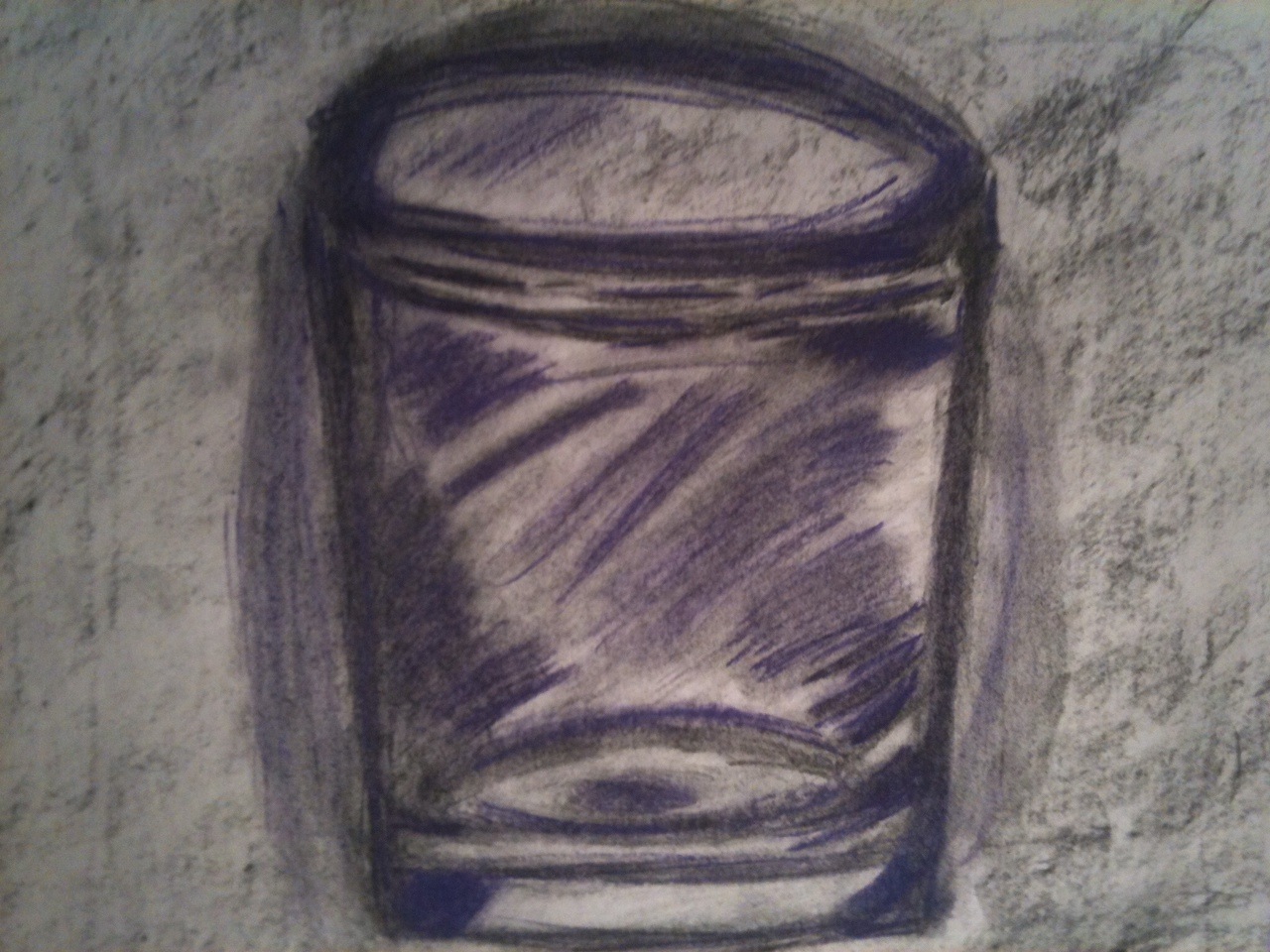 1st quarter we had to do a project, and draw a clear glass with all the shadings. But it was 8x6 paper, and very simple. So now it’s 2nd quarter and Ms. Hull told us to draw a clear object but this time the paper was 22x36. I got really nervous and didn’t know what to do. Then I just relaxed and thought about what she told us. I got my paper and black charcoal pastols. I remembered back in 1st quarter when we watched the artist start the glass. I shaded the background lightly so in the end it can look great. Then I drew a wide circle to start. Not all the way to the edge though. I started to form the rim of my 3-D glass, so it can look like it stick out my paper. I drew the rim and made it bend