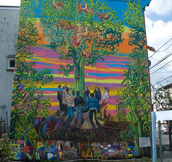 En la mural, hay un arbole de vida y esto demuestra la conexión entre todas formas de creación. Este metáfora es importante en la comunidad para promover igualdad. Este mural es en Filadelfia del sol y fue crea en 2007. La mural significa crecimiento, cambio, y fuerza. En realidad árboles son similar a personas porque ambos tiene raíces. Por ejemplo, personas tienen raíces que representan sus culturas, relaciones, y educación.