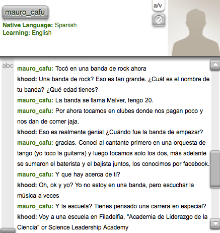 The person I talked to was very nice and they answered all my questions I needed to know about they're country and they also told me about themselves as well. They told me how the streets aren't really that safe and there's a lot of crimes/thefts. As for the education, neighboring countries come to learn in their country. They have a lot of public schools as well. The country of where he is from is where the "Tango" (dance)came from. This guy is also in a rock band (He's the guitarist) and him and his band play at clubs and events. Overall, this was a nice person to chat with.How did this interaction help you move towards achieving your personal goal?