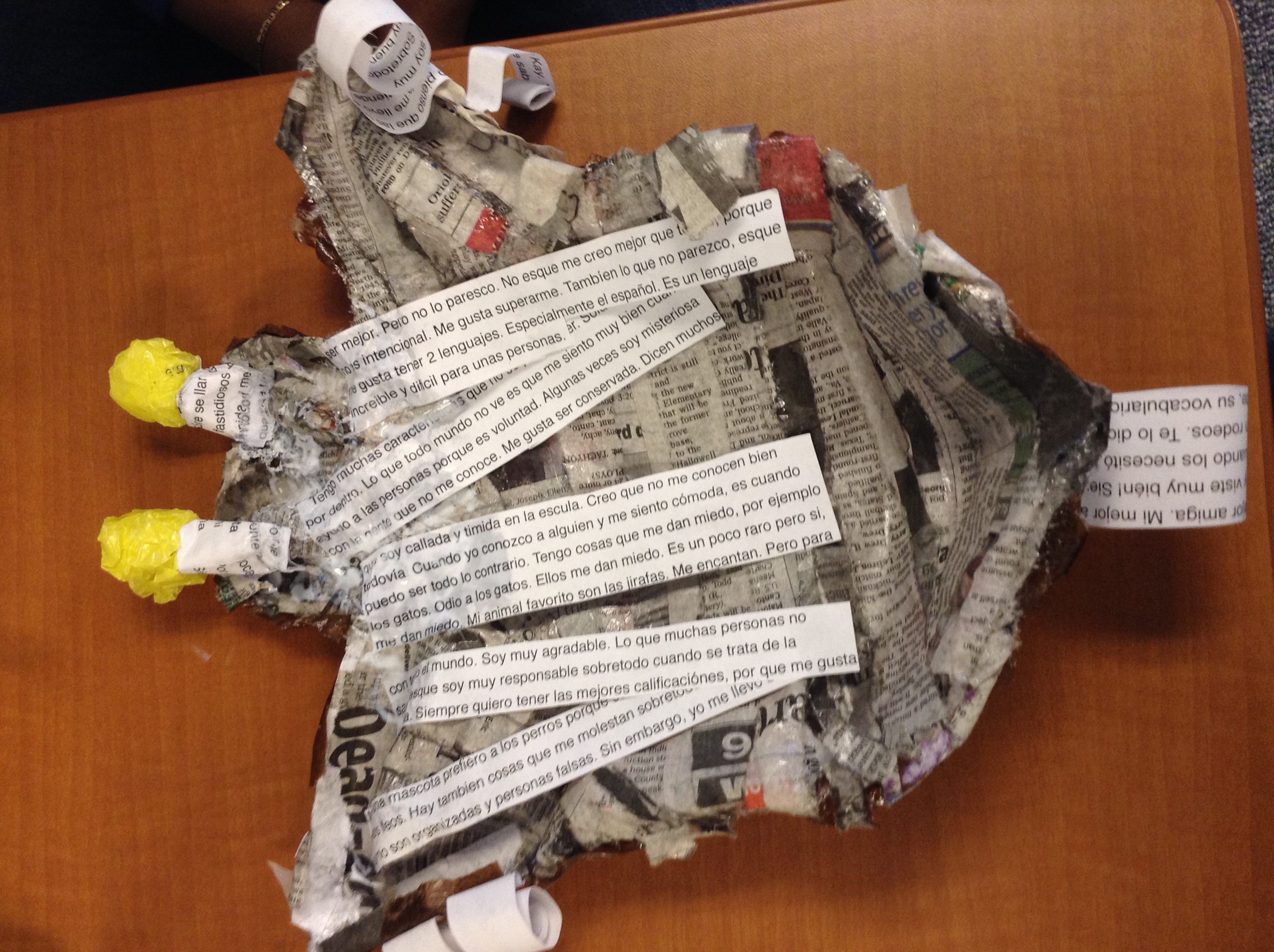 Yo soy Esperanza Gonzalez y soy una persona muy responsable e independiente. Soy una persona que le gusta ser si misma a toda costa. También una persona que le gusta ayudar a la gente, pero sobretodo ser amable con todos. Sin embargo, también me gusta ser superior. La idea que quise usar para mi máscara es la forma de una jirafa. Escogí la cara de una jirafa porque me encanta el animal, y me gusta la forma de su piel. Me gustan sus colores porque reflejan tranquilidad e independencia.