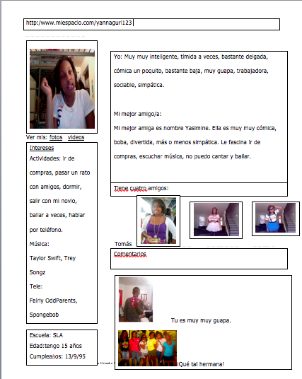 Mi espacio Posted by Tyanna Pleasant on Monday, November 22, 2010 at 8:22 pm Screen shot 2010-11-22 at 9.21.55 PM Comments No comments have been posted yet. Log in to post a comment.