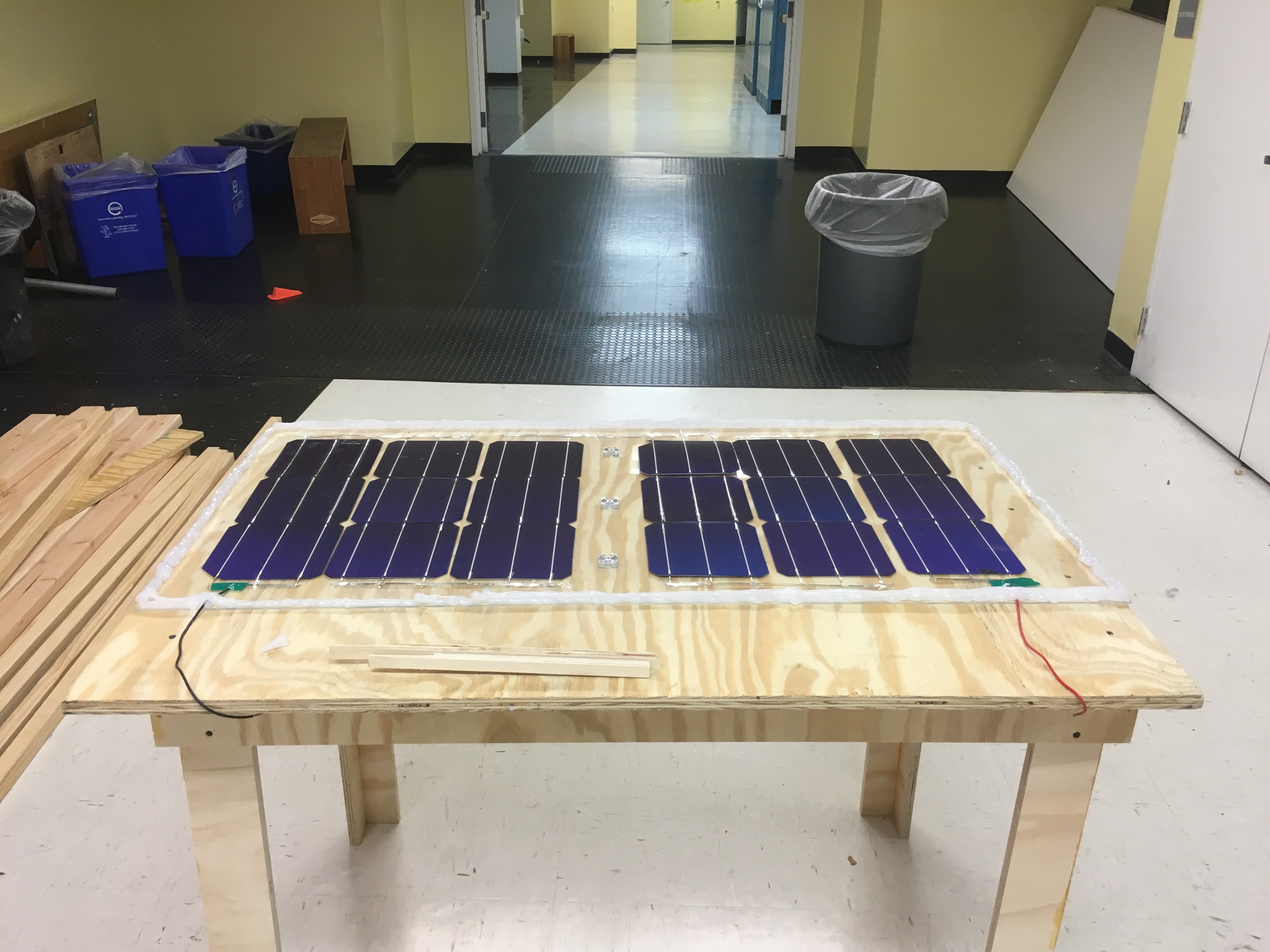 My partner Jonas completed the table that will be used as the station as well as the circuit that regulates the flow of electricity to the battery. All that is left to do as of now is mount the solar panel and place the charging station in a hallway.