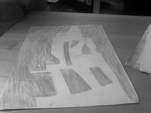 B. 1)I found negative space in my cut out by cutting out the spaces around the spaces that made up my picture. 2) I found negative space in my stool drawing by drawing the space around the stools from my view.