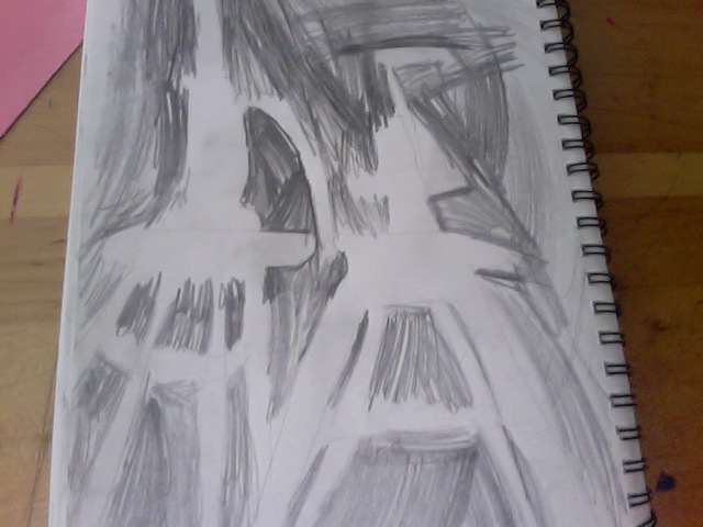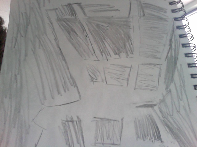 B. I saw negative space in the cutout because it alternates between surfaces. The first piece of paper is negative, then positive, then negative, and so on. In my stool drawing I just drew the parts of the orange paper that I could see.
