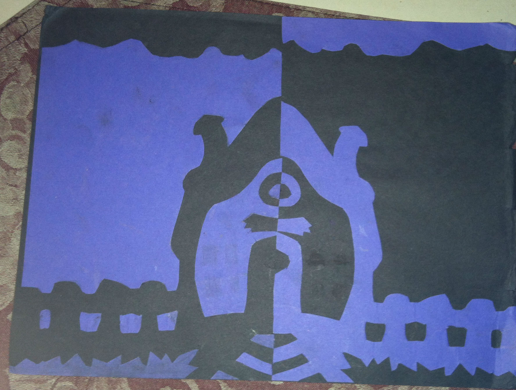 I found negative space in my cut out picture and in my stool drawing within the spaces in and around the subject. For the cut out piece I focused on the black and grey in the picture we were given. First, I cut out all of the parts of the picture of the house and traced them on one of the pieces of construction paper. Then I arrange the pieces that matched the black parts of the picture onto one half of my other piece of paper. Then, I arranged the remaining pieces that matched the grey parts on the second half of the full sheet of paper. The finished product was a picture of a house with the negative and positive space colors reversed on each side. Also, my technique for my stool drawing was that I shaded the entire paper and then erased the shapes of the subjects which were the table, stools, plant, and wire.