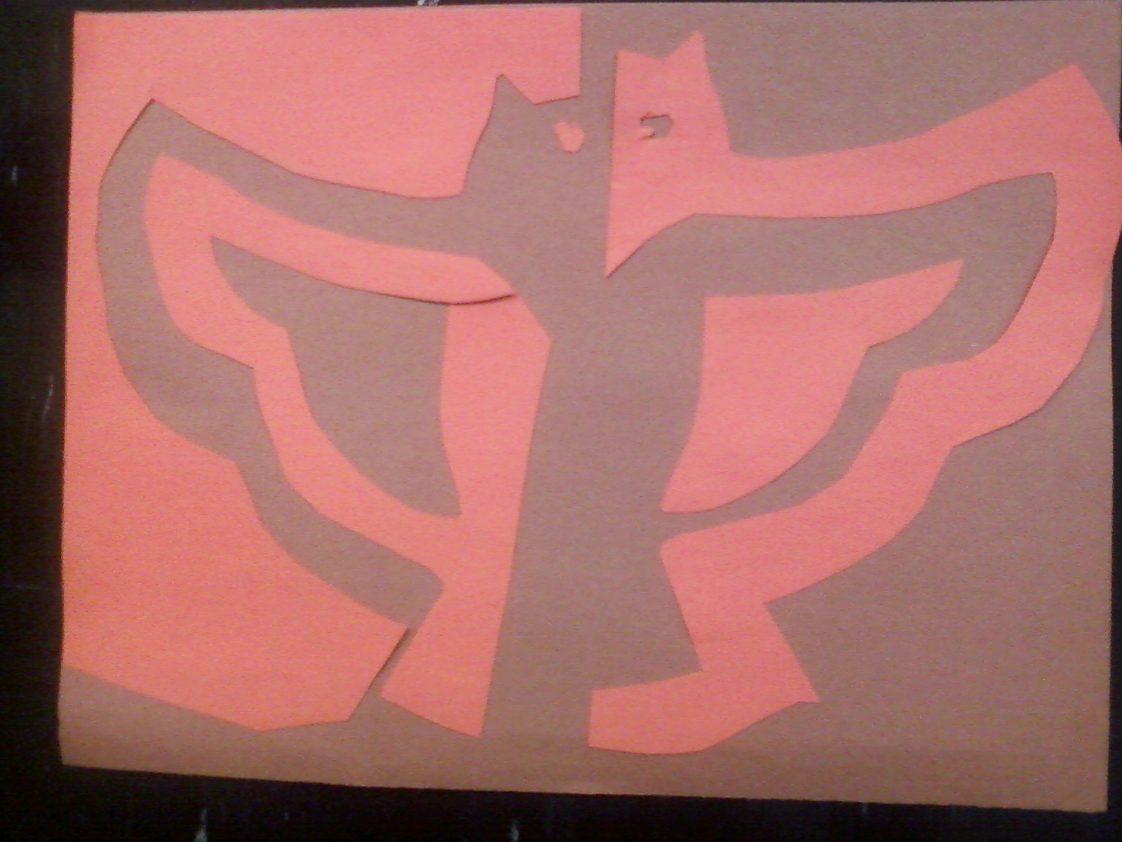The project that we had to do was about negative and positive space drawings. Negative space drawings are drawings where you draw the shape of the space before you draw the actual object. To find the negative space of the cutout I simply got the construction paper and that was my negative space. Then once I had my object I put it over another piece of construction paper (that was a different color) and cut it out; this was my positive space. For the stools I tried my best to focus on the shapes of the space that were not the object. So I shaded in my negative space for them. Negative space helps because it helps the artist to draw the picture easier. Also for the person viewing the picture it enhances the picture more. It's more contrast in negative space then in regular drawings, so it enhances it for the human eye.