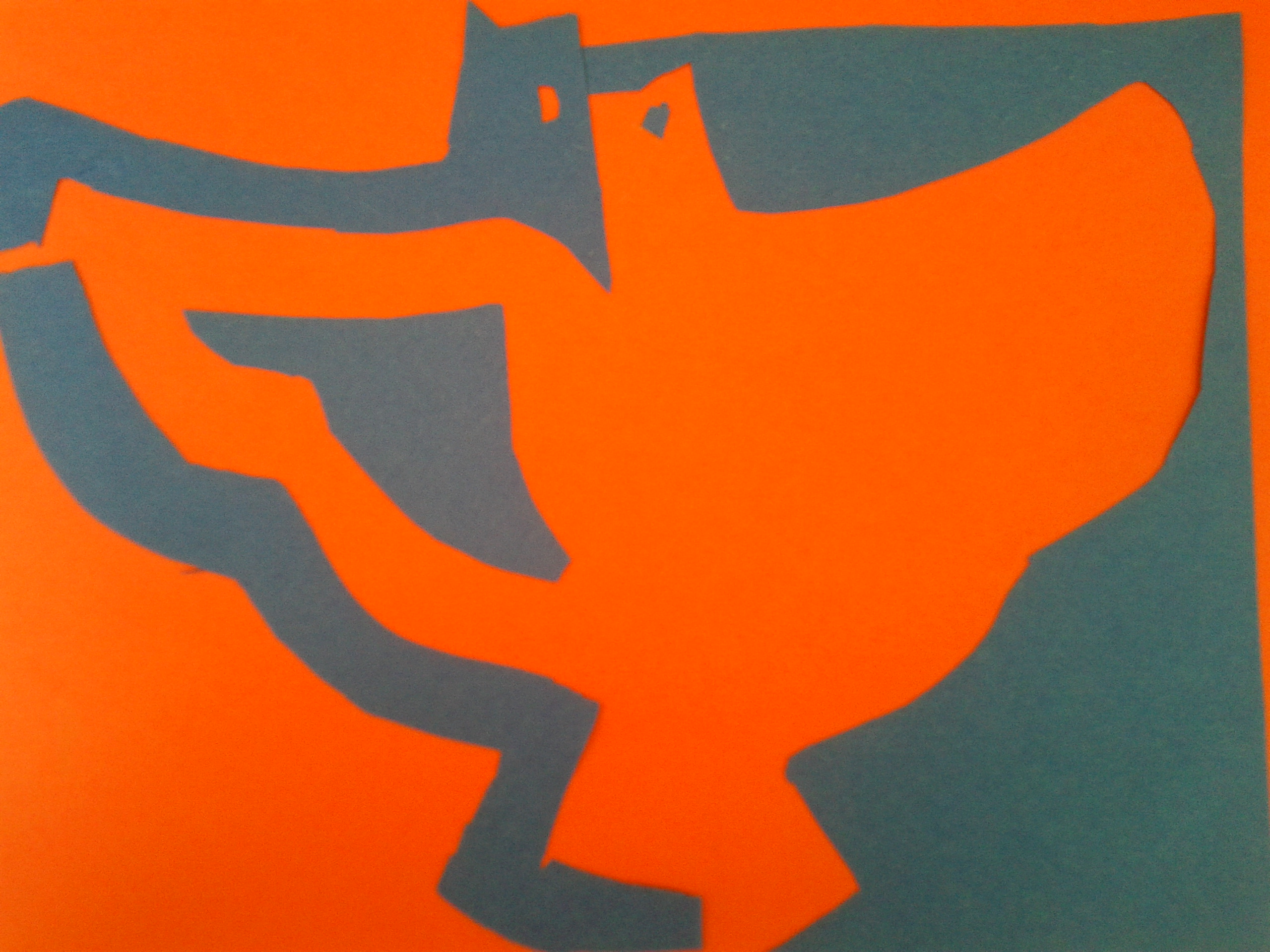 B. I found negatives in the cut-out by cutting out the shapes in one paper, then pasting the opposite color on the opposite colored paper. In the drawing, I found that drawing the outline of the stool, then shading the areas outside of the lines worked well.
