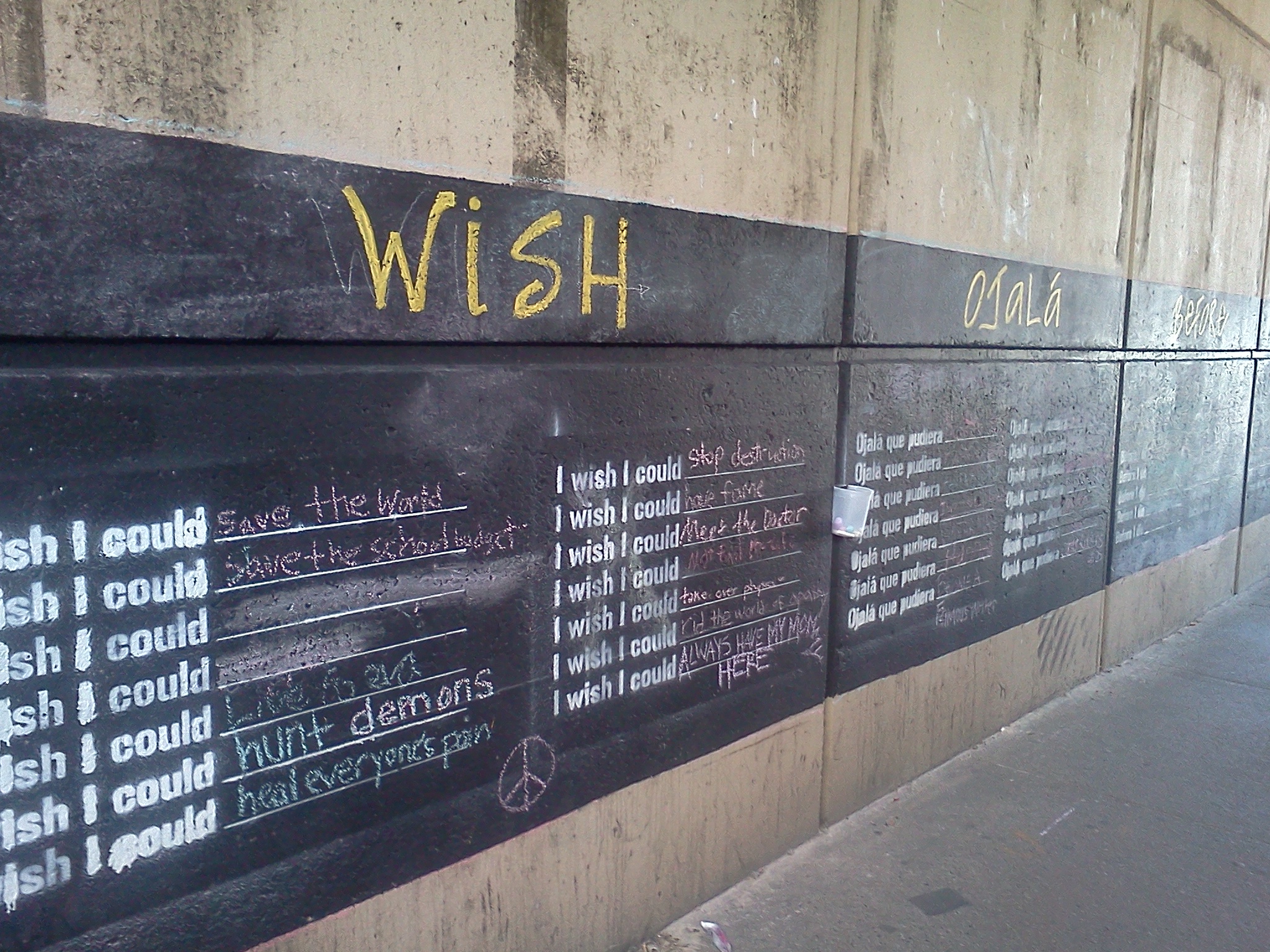 The project was inspired by Candy Chang's Before I Die project. It is a collaboration between Ms. Manuel's Spanish 4 class and Mr. Block's English 2 classes. Special thanks to the Home and School for generously funding this project.