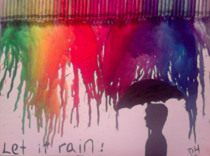 sideways under an umbrella with the melted crayons as the rain. This project