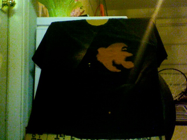 The first picture is a stencil from a stencil website that I then printed out and cut out the black of the picture. I gathered my materials which were 50% bleach/ 50% water solution, an old black shirt, cardboard (I could've used paper as the stencil but cardboard would ensure that the bleach didn't soak through) I placed the stencil on the shirt and sprayed the bleach around it a little bit at a time. I repeated this process once more on a polo shirt instead (thicker fabric). I actually enjoyed the crispness of the first try.