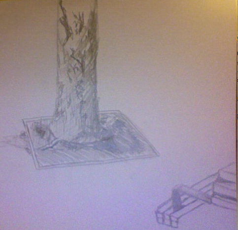 I chose to keep my outside piece very simple and almost sketch-like but I paid attention to "sloppy" detail without thinking to much into it I added shades where my eyes told me I seen shades. I really wanted to stray away from a piece that would like semi-realistic or artistic to tacky by adding unnecessary bricks, which in my mind would appear more like squares. When relating to an outside piece the way you portray that artwork is also a representation of the way your mind as an artist processes the environment around you. For example, usually in fast pace environments the artist will show that fast pace with the quickness in strokes or how much space is being used on the canvas. Blank negative space, in this case, was the best choice in my opinion for this specific work. I was sitting in a simple calm park and with not much clouding my thoughts or view I didn't believe that there should be much clouding or lingering around the main focus, the tree.