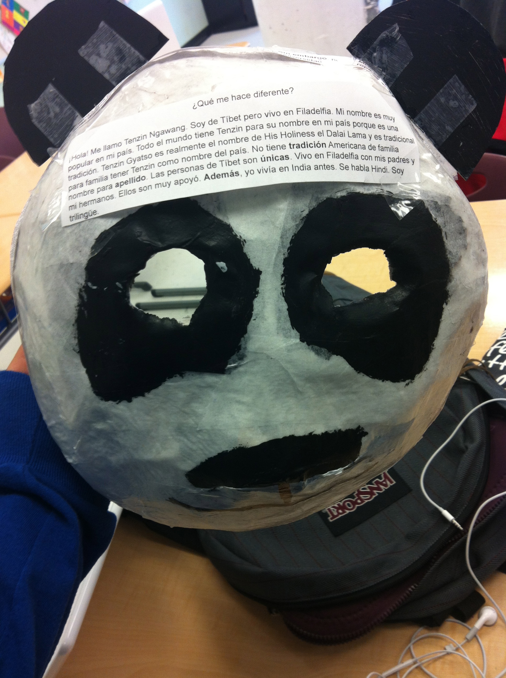 ¡Hola! Me llamo Tenzin Ngawang. Soy de Tíbet pero vivo en Filadelfia. Mi nombre es muy popular en mi país. Todo el mundo tiene Tenzin para su nombre en mi país porque es una tradición. Tenzin Gyatso es realmente el nombre de His Holiness el Dalai Lama y es tradicional para familia tener Tenzin como nombre del país. No tiene tradición Americana de familia nombre para apellido. Las personas de Tíbet son únicas. Vivo en Filadelfia con mis padres y mi hermanos. Ellos son muy apoyó. Además, yo vivía en India antes. Se habla Hindi. Soy trilingüe.