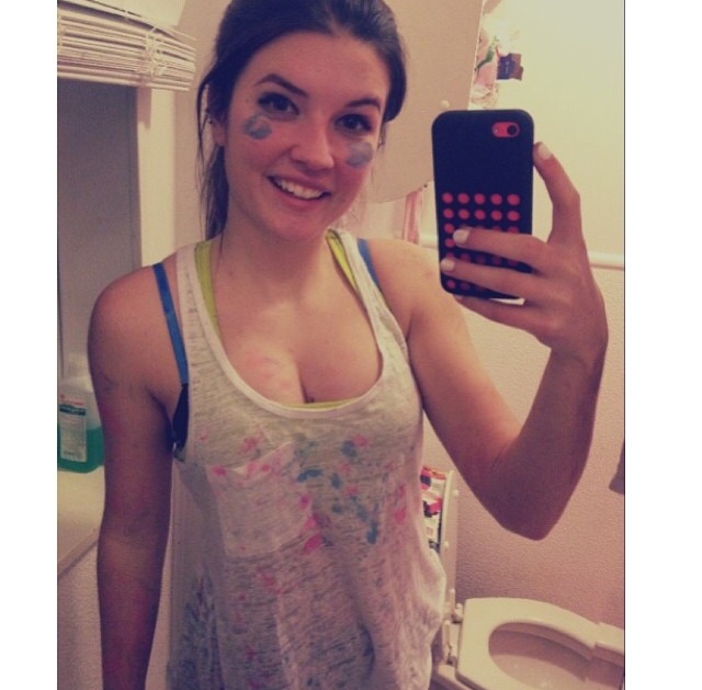In all of my selfies and other posts on social networks try to represent myself in a way that I won’t regret in a of couple years. When I take selfies I make sure either my makeup is really good or my hair is a certain way. However if I really want to capture the moment and I don’t look my best I will still take a selfie or a picture because I don’t want to forget the moment. There are some reasons why I take selfies and if I like them enough I will post them on Instagram or Twitter. I'm sure there are some pictures of me on my instagram that shouldn't be there because I'm not presenting myself in the best way possible but I like the picture either way. Every selfie I put up is for me and no one else. I don’t care what they think about it, if they like or not. I chose these selfies because I wanted them to represent things that I like. In the first one I am covered in paint and I wanted to capture how I looked after a concert. In the second one I wanted to capture the time I went to a Flyers game on Halloween and a man had a mask on behind me. In the third I just liked my makeup and wanted to take a picture.