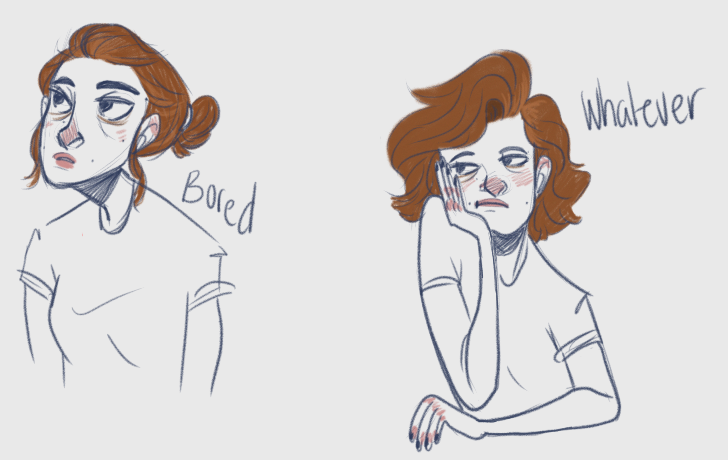 The first one is kind of "artsy", I wouldn't say it really represents me but not a lot of pictures I take of myself are really trying to. A lot of my selfies are kind of silly and don't really have any other meaning that just "hey, look at my face". The first one is one I took while I was out gathering pictures for my capstone, which is basically a photo portfolio. I felt like a regular selfie wouldn't cut it in the 'self portrait' area, so I took one through the rearview mirror. The second one is kind of the epitome of my 'selfies' it's me, with my cat, looking fed up and that's pretty much all it needs to say. The third one, I would say are my best selfies. The pictures of myself that I draw are always the more honest ones, even though these are just kind of dumb doodles.