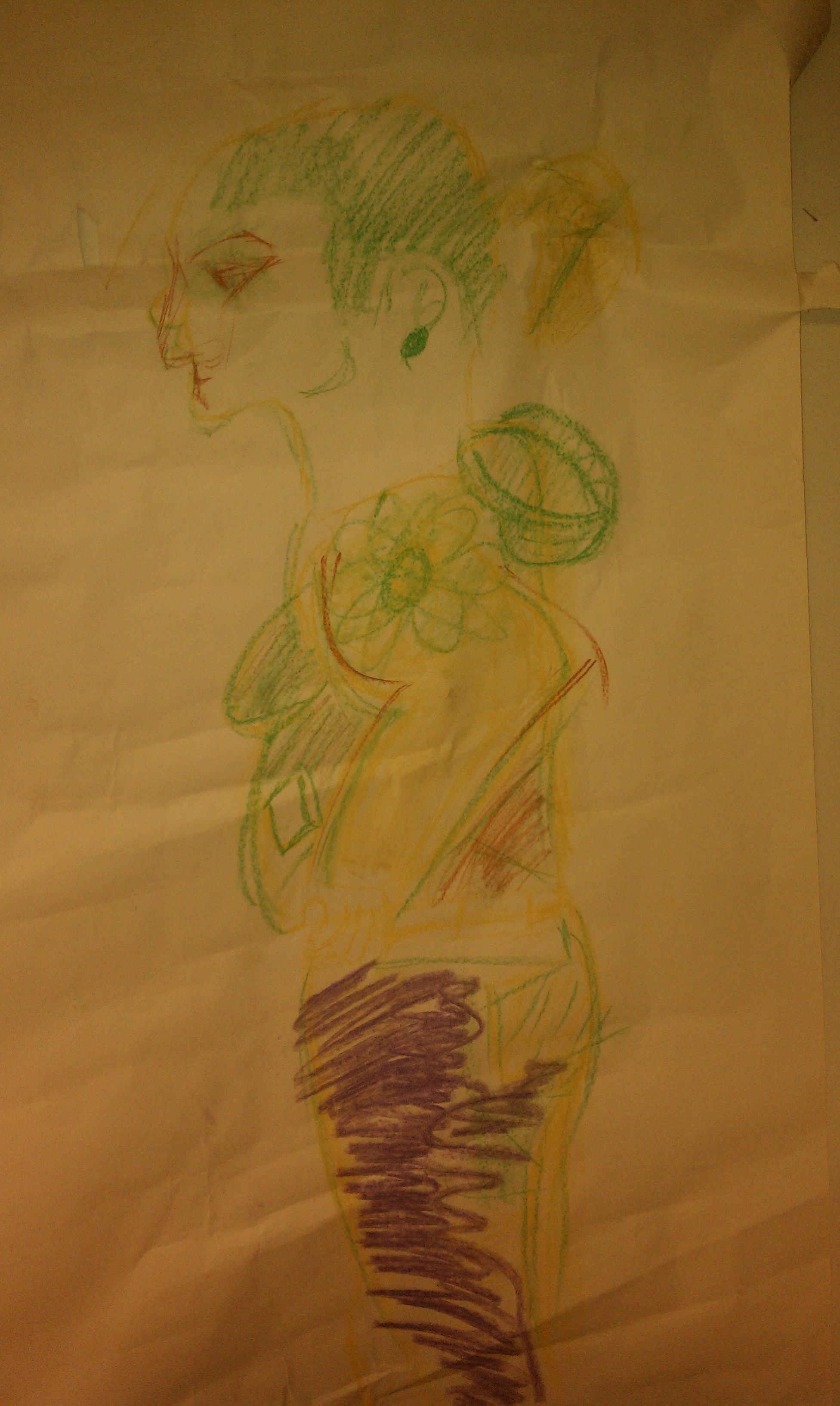 Although this was an assignment meant to look identical to the model, mine came out a little more of a caricature. I started to draw the upper body then the lower body, that's why it came out so awkward looking because they are not proportional. I really like how she looks like a cartoon, although that wasn't the goal, my picture makes me feel like I drew what Sam Boyd feels like, not so much looks like. My little yellow piece of charcoal was my favorite because they had a really nice flow to them when I started drawing with them.