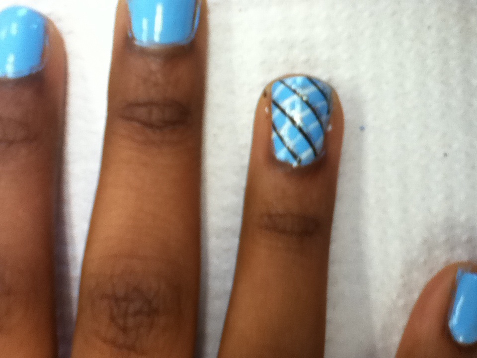 Also unfortunately, during this marking period I got a little side tracked. I found myself getting bored with the piece I had started the first marking period, so I started on a new project. A hobby that I had taken up was polishing my nails. However this was not just polishing my nails with one color. Some how I had taught myself to duplicate the nail art that is done professionally at salons. I had not realized that this in fact was an art until I received comments such as "Your really talented!" and "Wow.You should get a job at the nail salon!". So as a side project,I paint several girls nails in my art class. I have done intricate designs such as strips and flowers.