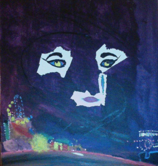For the creative portion of my project I had decided to create a portrait of The Great Gatsby cover. With the night sky and at the bottom the lights of Gatsby’s parties. The face in the sky I decided to interpret as that of Daisy’s, and instead of having her hover over the night sky I decided to have it look like her face had ripped the sky apart with her face to represent Gatsby’s desperation to find Daisy.