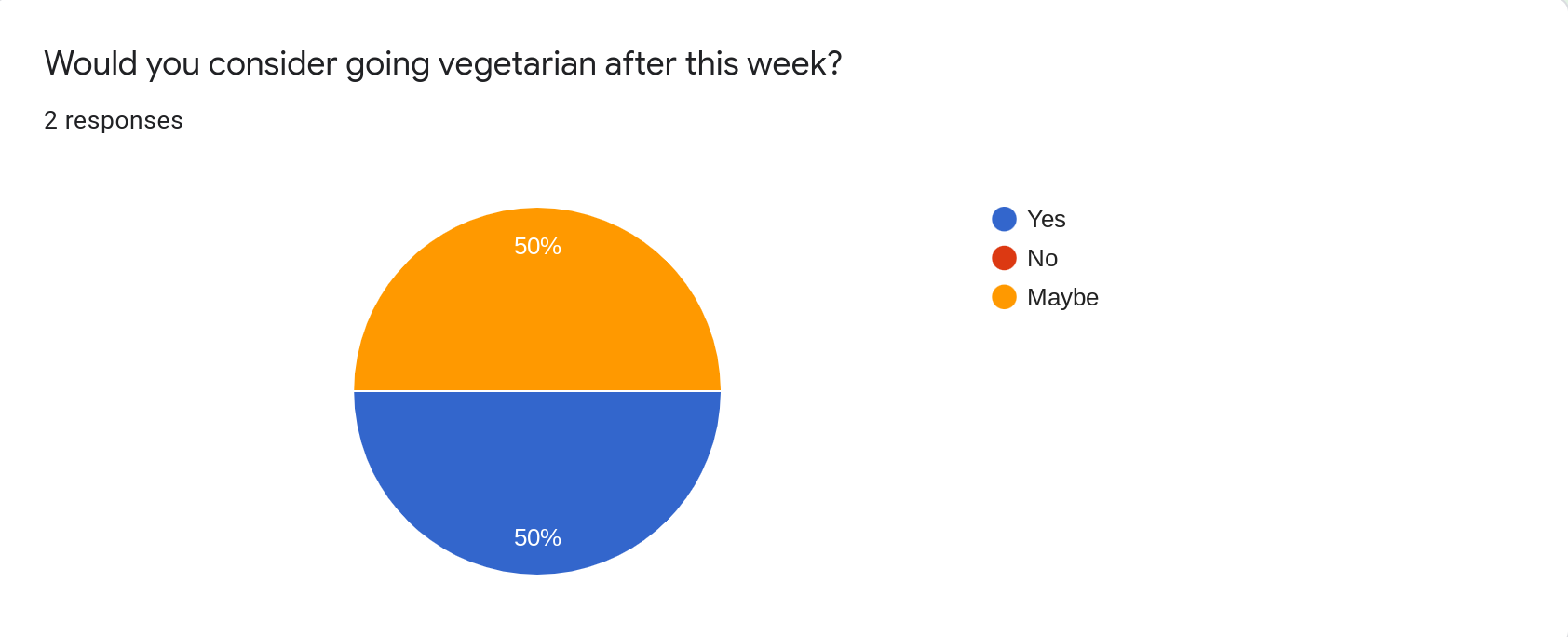 For my Agent of Change, I decided to create a Vegetarian Challenge where I encourage students at SLA to eat all plant based or attempt to eat all plant based for a week, in hopes of introducing the vegetarian lifestyle and bringing awareness to the harmful things eating meat can do. This idea first came to be when I questioned, how can I get people to physically change their diet and what they eat, without forcing them to go full vegetarian. That’s when the idea of a challenge popped into my head. A low pressure, vegetarian challenge that could help people arrive at the first and hardest base of vegetarianism; actually eating all plant based. The rules were to try to eat all plant based for five days while keeping a food log of all the things you ate during the week. At the end of the week, participants will receive a google form they have to fill out and turn in their work logs.