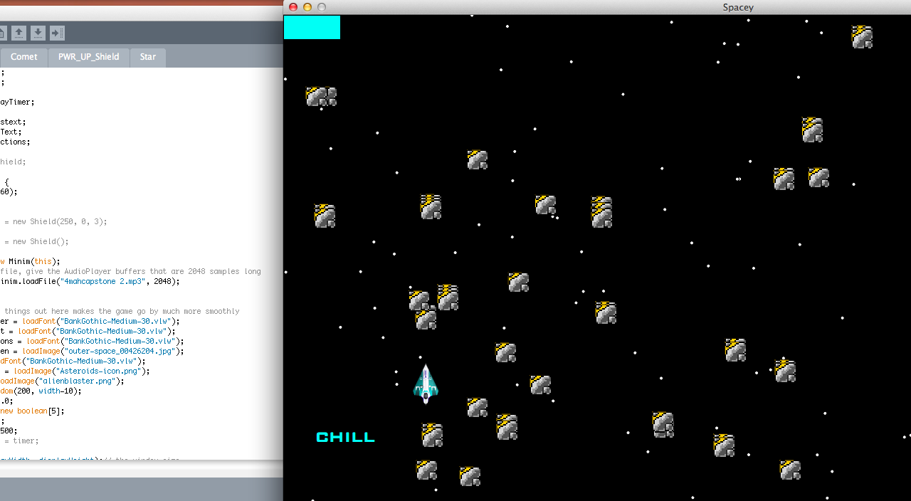 The purpose of this project was to help me gain a better understanding of computer coding.  I've always been interested in the process that goes into making things appear on a computer screen or within  a window on a program when playing video games.  I decided to try my hand at making a game with help from my four day a week computer science class.  Since I decided to use processing™ I gained more experience using a computer language based on Java.  Through the process of thinking of a game to make and then writing the code for it, I believe that I am more prepared for my intended major which may involve coding with a language like java.