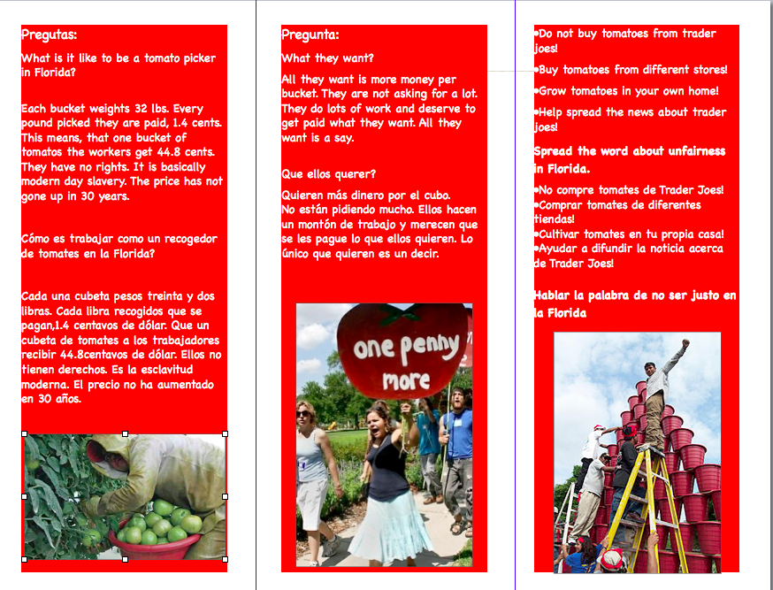 Trader Joe's spanish project Posted by Goldie Robins in Spanish 3 - Gierke on Tuesday, November 29, 2011 at 11:53 pm Screen Shot 2011-11-30 at 12.51.48 AMScreen Shot 2011-11-30 at 12.52.10 AM Comments No comments have been posted yet. Log in to post a comment.