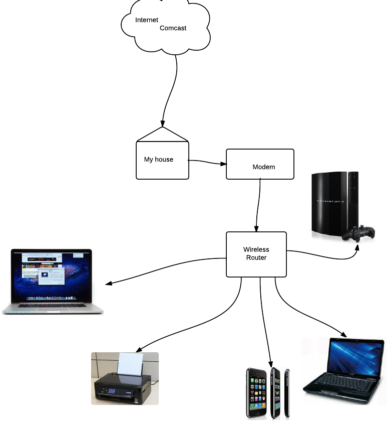 2. There are a lot of things connected to my L.A.N. network. We have three I-phones connected to the network, two computers, one Mac Book Pro and one Toshiba. We also have a wireless printer that is connected to the network. I have a Play Station 3 that is also connected to the network. Those are all the things connected to my router.