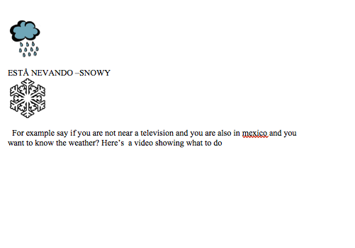 Weather in Español Posted by Alhaji Koita in Spanish 1 - Manuel on Sunday, October 30, 2011 at 5:42 pm Screen Shot 2011-10-30 at 5.25.51 PMScreen Shot 2011-10-30 at 5.25.36 PMScreen Shot 2011-10-30 at 5.25.29 PMHERE'S ALEX'S LESSON ON BASIC CONVERSATIONS http://scienceleadership.org/blog/How_to_have_a_basic_conversation-iEN_ESPAOL Comments (4) Owen Grzywinski Try being a little more serious! Alex says AIAIAI in almost every video! Amy Chen it will be nice if you add more example in the video but very creative Pierce Meier Bien hecho Kenny Nguyen Buen trabajo Log in to post a comment.