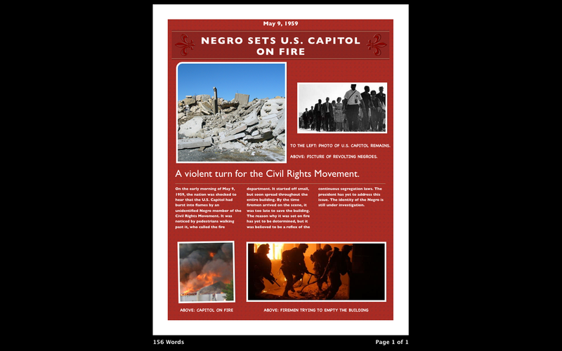 I liked the fact that this project allowed me to think deeply about an outcome of a different situation. I have always found myself wondering questions like "What if this happened instead". This project gave me the opportunity to explore this thought for a lasting topic that I find very compelling, the fight for equality. It was however difficult finding primary sources that would support my point of divergence, as there were not many available. For example, it took me a while to find the psychiatric examination records of Izola Curry (the woman that stabbed MLK). There were not many primary sources about her out there, most were secondary. Luckily, I eventually found what I was looking for when going on a website about his life.
