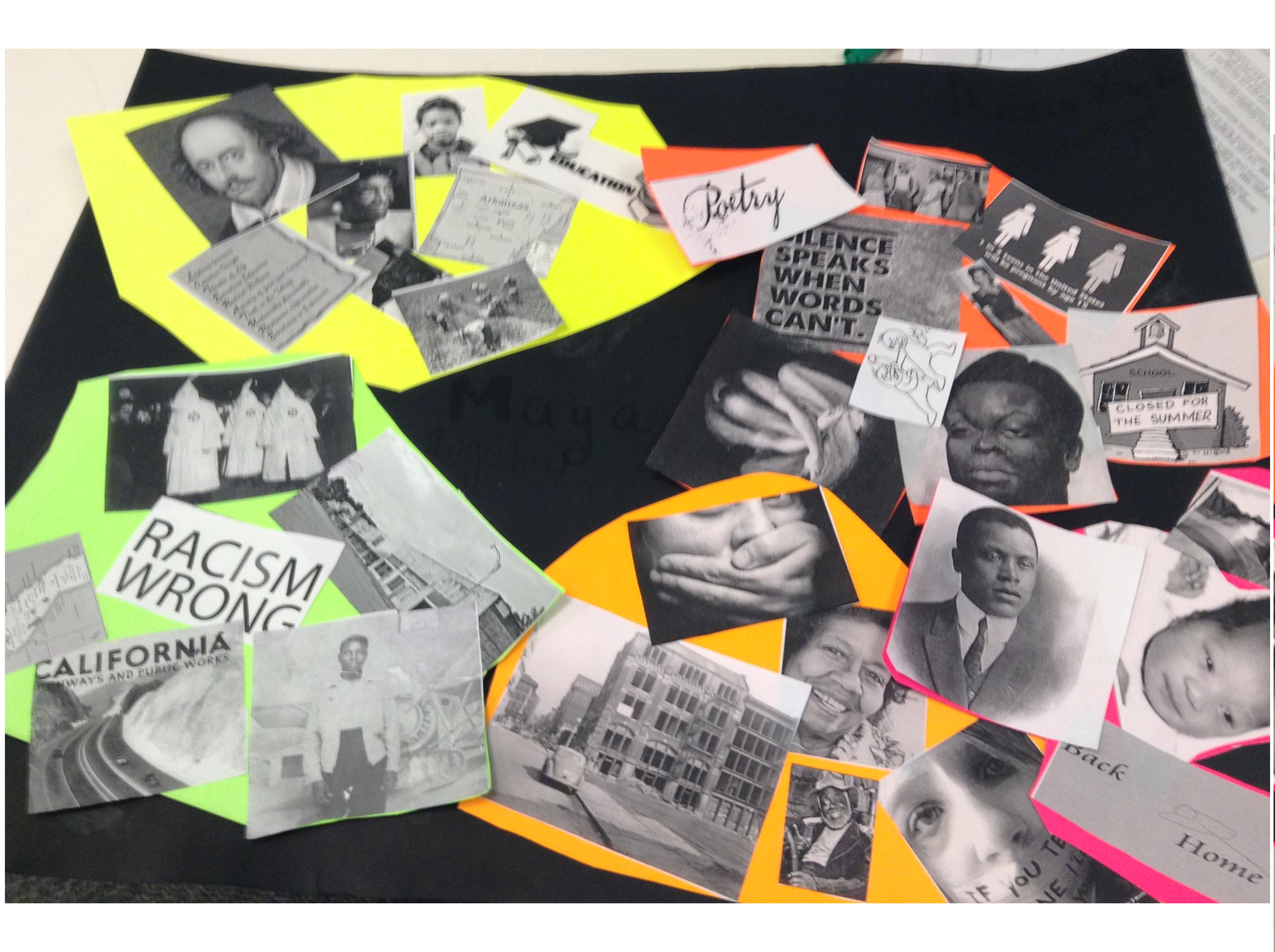 For my Creative portion I wanted to make a collage showing different portions of Maya Angelou's life. My pictures on the neon green papers represent Maya’s life when she moved to Arkansas at three years old. Maya lived with her grandmother and her uncle in Stamps, Arkansas where her grandmother ran a store thats customers usually consisted of cotton pickers and lumber workers. At a young age Maya had the importance of education embed in her. Maya grew up loving to read, especially Shakespeare.In the green picture the pictures represent the racism that was present in Arkansas and they also represent her father who lived in California. When Maya was almost 8 years old her dad came and decided she should live with her mother. The orange picture represents Maya in St.Louis with her mother Vivian. Vivian had a boyfriend named Mr.Freeman. Mr.Freeman ended up raping Maya when she was only 8 years old and told her that if she were to tell anybody he would kill her and whomever she told. The darker orange pictures represent Maya being silent for many years. She wouldn’t talk to anybody but her brother and her family in St.Louis decided to send her back to her Grandmother where she meets Mrs.Summers. Mrs.Summers starts Maya’s love for poetry but also, more importantly, gets Maya to speak again. A few years later Maya moved back in with her mother and that summer Maya’s dad says he wants Maya to spend the Summer with him in California. In California with her dad Maya meets his girlfriend Dolores who has an immense hate for Maya. Maya and Dolores gets into a physical fight that results in Maya running away for a month where she stayed with homeless kids in a car lot. The pink paper represents Mayas life when she goes back to live with her mother and her mother's husband Cliedell after running away from her father. Maya thinks she is underdeveloped  after seeing many other females her age with more voluptuous bodies. She even believes that she is possibly a lesbian hermaphrodite. In order to lay her fears to rest Maya sleeps with an attractive boy in the neighborhood which end up in an unplanned pregnancy. Maya is able to hid her pregnancy for months but soon decides that because she is due very soon that she should tell her parents. They accept her situation and at the end of the book Maya gives birth to a healthy son named Guy.